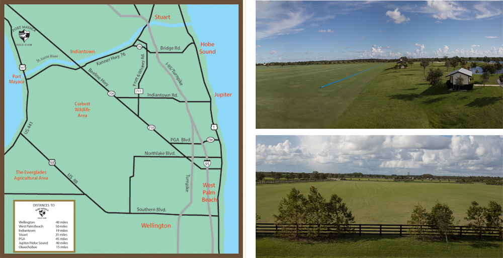 The Port Mayaca Polo Club is located in western Martin County, off of US Highway 441; 4 ½ miles north of SR 76/Kanner Highway, and 7 ½ miles south of CR 15B.